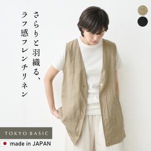 ロングジレ ジレ コーデ 50代 前開き 夏 リネンベスト レディース 40番手 フレンチリネン100% ジレ 日本製