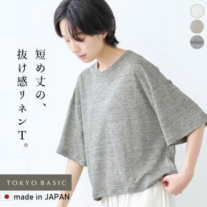 ショート丈 tシャツ レディース トップス カットソー 夏 40代 50代 日本製 プレミアムリネン100% クロップド丈 ゆったり Tシャツ