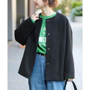 ノーカラーコート コート 「取り外し可能」フェイクファーカラーシャギーコート レディース
