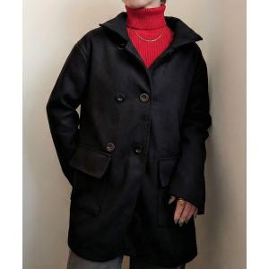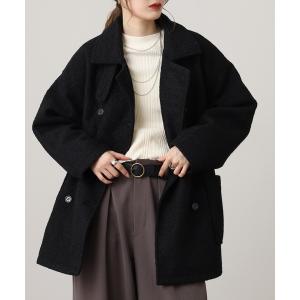 ピーコート pコート ビッグカラーで小顔見え。ふわっと羽織って、キュンとこなれる。ビッグカラーフェイクウールダブルコート レディース
