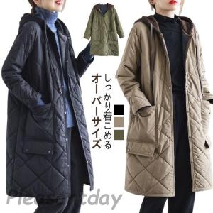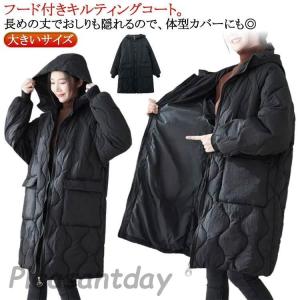 キルティング ロングコート ロング丈 アウター レディース 中綿キルト コート 大きいサイズ 秋 冬 暖かい 体型カバー カジュアル おしゃれ 防寒コ