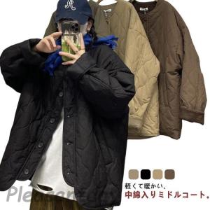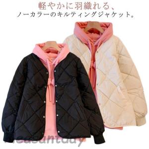 コート レディース アウター 羽織り 上着 長袖 秋 冬 春 キルティング ノーカラー 中綿 保温 ポケット付き 無地 ノーカラ