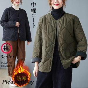 キルティングコート 中綿コート ノーカラー アウター 羽織り 長袖 ショート丈 防寒 ゆったり 秋冬 ポケット有り ボタン留め おしゃれ 大きいサイズ