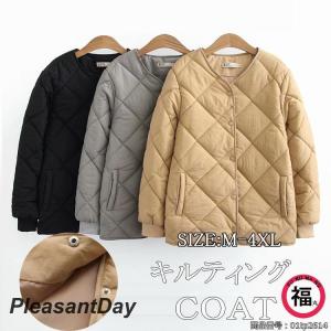 キルティングコート ノーカラー アウター 羽織り 上着 中綿 大きいサイズ ゆったり 秋冬 インナー 大きいサイズ