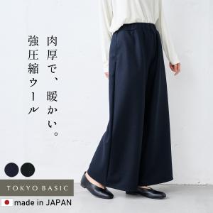ワイドパンツルック 40代 50代冬 太め 圧縮ウール100% ワイドパンツ 日本製 暖かい 防寒