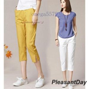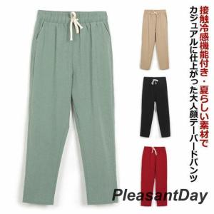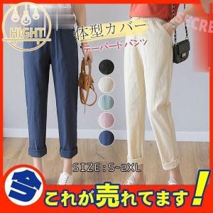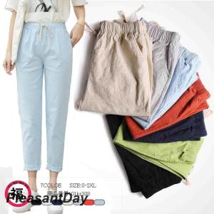 テーパードパンツ レディース 綿麻 7分丈 ボトムス パンツ 通勤 麻 ウエストゴム 夏 サマー