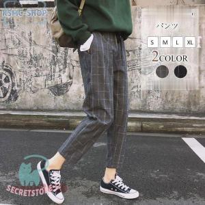 テーパードパンツ レディース 九分丈 パンツ グレンチェック 美脚 ボトムス ストレッチ テーパード レギンスパンツ チェック ジョガーパンツ イージーパンツ