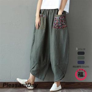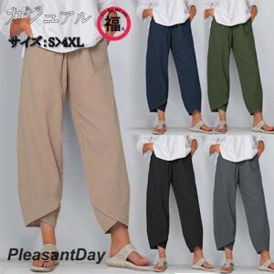 パンツ 綿麻パンツ ボトムス サルエルパンツ テーパードパンツ レディース カジュアル ポケット付き ゆったり 大きいサイズ