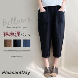 パンツ レディース ボトムス テーパードパンツ チノパン サルエル ロングパンツ パンツ ゆったり コットン リネン 綿麻 ポケット付 薄手 春 夏 秋