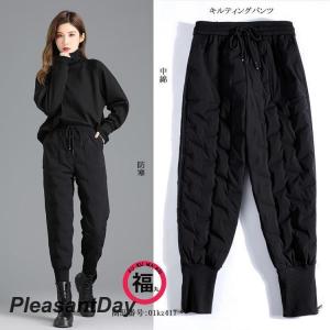キルティングパンツ 中綿パンツ サルエルパンツ ボトムス テーパードパンツ ズボン レディース おしゃれ ゆったり 無地 カジュアル 着痩せ 秋冬
