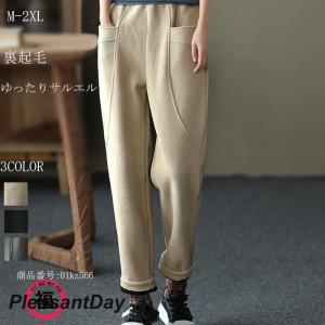 サルエルパンツ パンツ ズボン ボトムス レディース 裏起毛 起毛 裏ボア ボア 無地 カジュアル 着痩せ ゆったり シンプル 秋冬