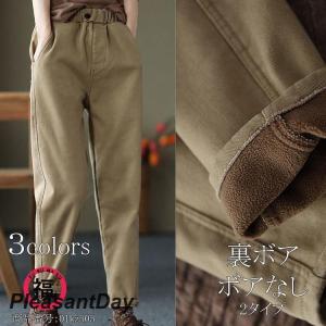 テーパードパンツ パンツ レディース ボトムス 綿 コットン 裏起毛 体型カバー 大きいサイズ ウエストゴム 楽ちん おしゃれ ゆったり