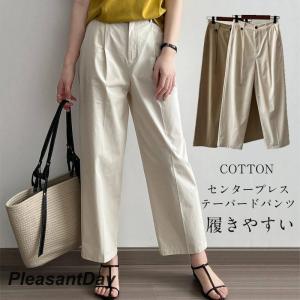 センタープレステーパードパンツ レディース 春夏 ボトムス パンツ テーパード センタープレス スラックス ストレート ワイドパンツ 綿 コットン タック