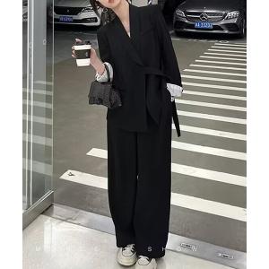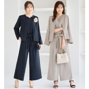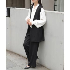セレモニースーツ セットアップ 入学式 卒業式 ペプラムベスト×テーパードパンツ2点セット レディース