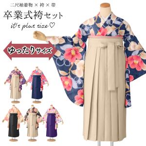 ぽっちゃりサイズ 卒業式 袴セット プラスサイズ ゆったり ワイド 大きい ラージ 小紋柄 二尺袖 無地袴 3点セット くすみカラー 女性 レディース 購入