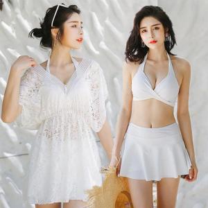 白 タンキニ 3点セット 体型カバー 水着 レディース ビキニ レース ラッシュガード ワンピース お洒落 スイムウェア 夏 海 旅行 20代