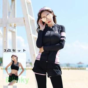 フィットネス 水着 レディース ラッシュガード 長袖 体型カバー フィットネス水着 セパレート タンキニ 3点セット ママ水着 短パン スポーツウェア 大きいサイズ