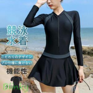 フィットネス水着 レディース オールインワン 競泳水着 温泉 スイムウェア スカート付き 水着 女性 長袖 体型カバー 練習用 短パン ファスナー