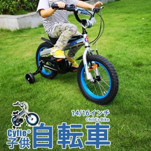 [24-26日限定10倍P付] 子供自転車 14インチ ブルー 数量限定キャンペーン Cyfie 補助付き ナイト 泥除け付き 滑り止めハンドル付き 簡単に組み立て