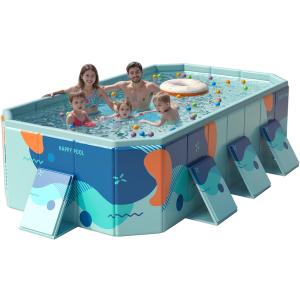 Natsunikki フレームプール、家庭用大型インフレータブル折りたたみ式プール 外径210*143*48CM、内径186*118*48CM
