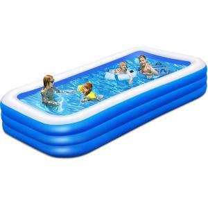 Natsunikki インフレータブル パドリング プール、3つのリング、子供、幼児、大人向けの大型四角ファミリースイミングセンター、205*125*