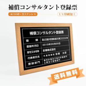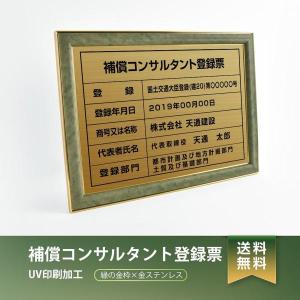【送料無料】補償コンサルタント登録票 緑の金枠x金ステンレス W421×H572mm 選べる書体 枠 UV印刷 ステンレス 宅建 標識 看板 取引業者 短納期(BC-NEWGR)