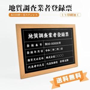 【送料無料】地質調査業者登録票 茶の金枠x金ステンレス W560×H409mm 選べる書体 枠 UV印刷 ステンレス 宅建 標識 看板 取引業者 短納期(cst-newBE)