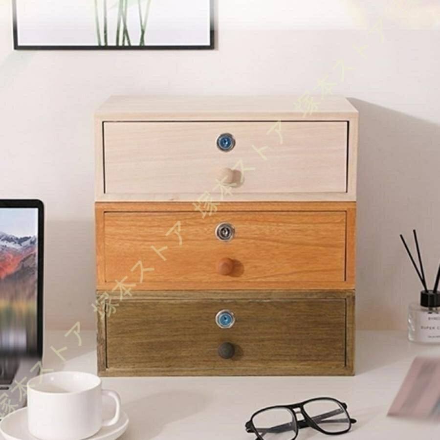 鍵付き ミニチェスト 木製 卓上 収納ボックス 引き出し 事務用品 オフィス 文房具収納 机上収納 机上用品 オフィス 寝室 居間 頑丈 耐用 天然木の風合い