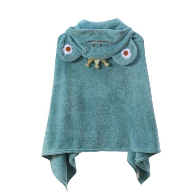 キッズ バスタオル ポンチョ バスローブ 着るバスタオル 吸水 速乾 フード付き ラップタオル かわいい アニマル柄 サンゴフリース ブルー ピンク グレー ベージュ グリーン パープル