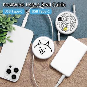 充電ケーブル リール式 Type-C to Type-C にゃんこ大戦争 同期 充電コード PD60W 対応 USB2.0 pnd-09