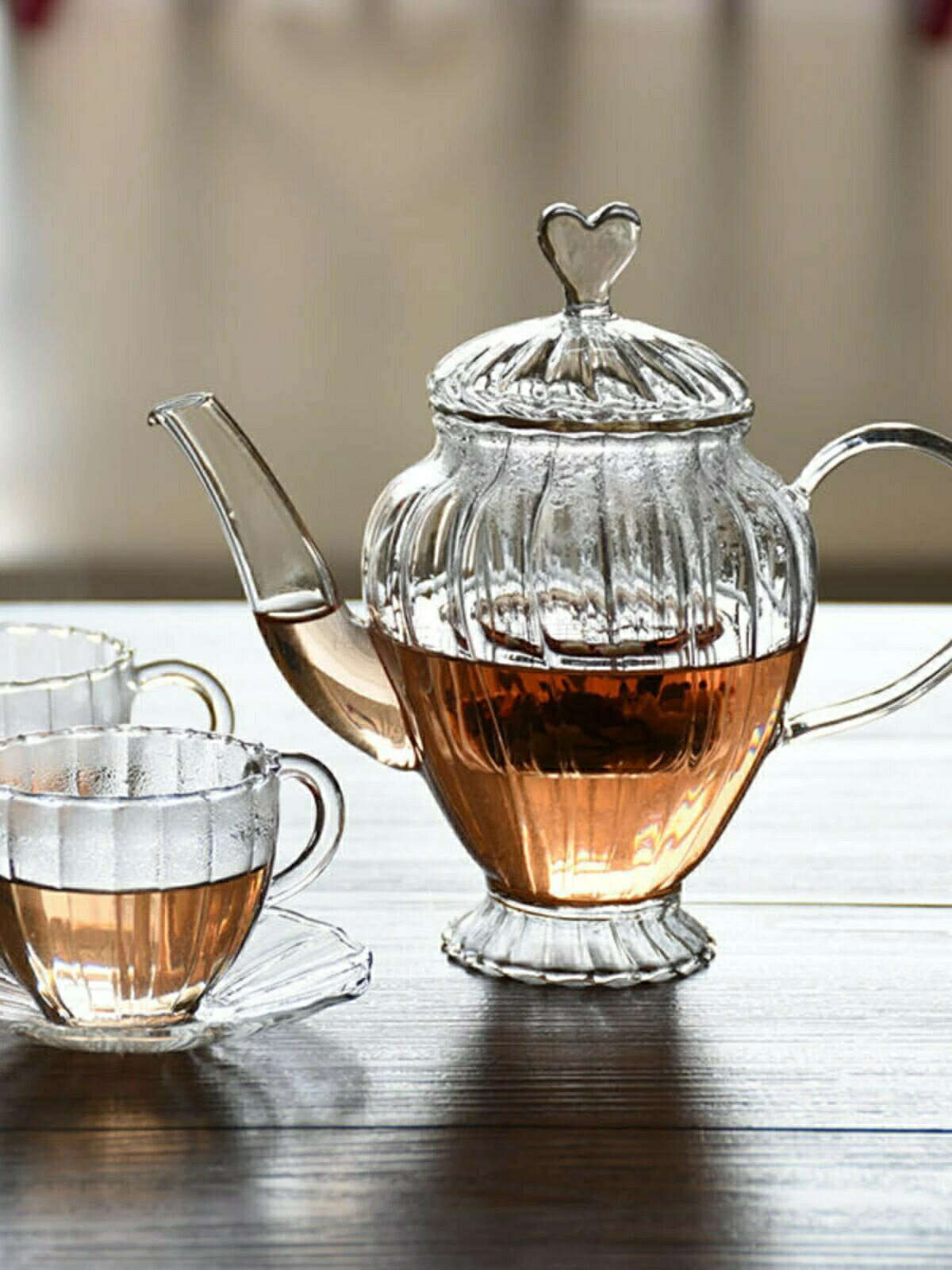 ハート 耐熱ガラス ティーポット モール ガラスティーポット ガラス急須 ガラスポット ティーセット ティーカップ ティーグラス ガラス製ポット ins 人気 かわいい 手作り 紅茶ポット フルーツティー ハーフティー に 透明 クリア おしゃれ 母の日プレゼント