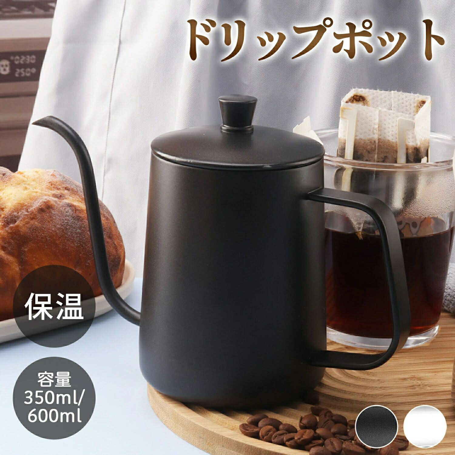 コーヒードリップポット 細口 ポット コーヒーポット ドリップポット アウトドア IH 直火 対応 キャンプ用 350ml 600ml 約1-3杯分 ストーブ用 コーヒー グッズ ケトル ステンレスケトル コーヒーケトル コーヒー器具 おしゃれ シンプル ブラック シルバー