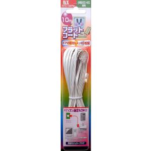 モジュラーケーブル 10M 家庭用 電話線 フラット テレホンケーブル ひかり電話 FAX 対応 6極4芯 6極2芯対応 ホワイト CMJ-F10WH 送料無料 TARO'S
