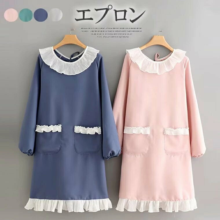 可愛くて優しい雰囲気に!フリル 長袖 エプロン スモック ポケット付き かっぽうぎ 割烹着 料理教室 保育士 長袖エプロン ゆったり 新婚さん プレゼント