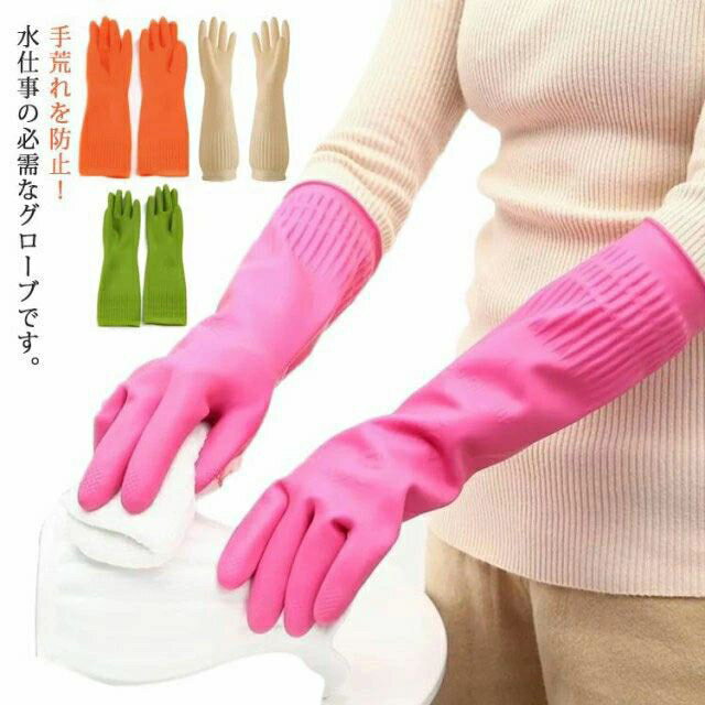 ゴム手袋 手袋 ゴム レディース キッチン おしゃれ 作業用 ロング かわいい 家事用 母の日 ギフト 食器洗い 食材洗い キッチン掃除 バスルーム掃除 お風呂掃除 浴槽掃除 床掃除 カビ取り カビ掃除 トイレ掃除 ガーデニング 家庭菜園 ベランダ菜園 水仕事 四季兼用