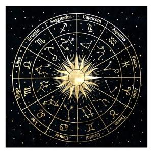 タロットクロス 大判 高級 マット ベルベット 49*49Cm 滑り止め付き 星座風 五芒星 バラ新月 カードゲーム用 占い用 クロス 星座-日