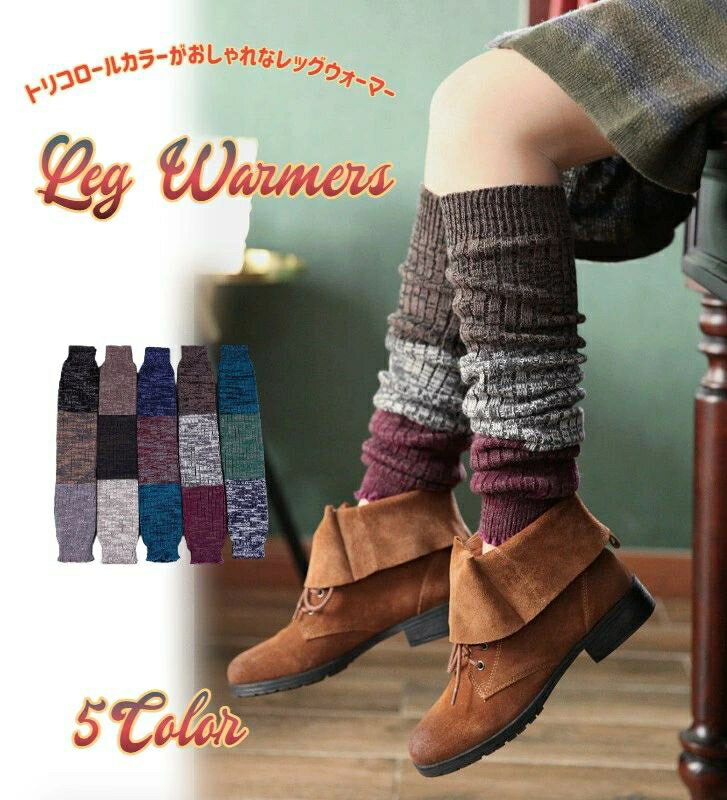 トリコロールカラーがおしゃれな ロング レッグウォーマー 女子高生 レディース ニット あったかい 暖かい オシャレ 保温 防寒 防寒対策 冬 ルーズレッグウォーマー 女性用 学生用 全5色