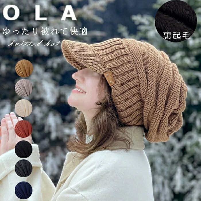 ニット帽 レディース キャスケット 帽子 裏起毛 大きいサイズ つば広 つば部分 遮光 UVカット 秋 冬 秋冬 防寒 防風 小顔効果 50-63cm