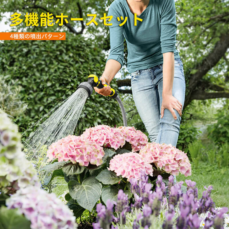 お買い物マラソン【P5倍】多機能ホースセット 便利な操作 多機能散水ノズル散水 ホース 庭 植物 植木 ベランダ ガーデニング 10m 水やり 家庭菜園 庭 ハンディ 4種類の噴出パターン