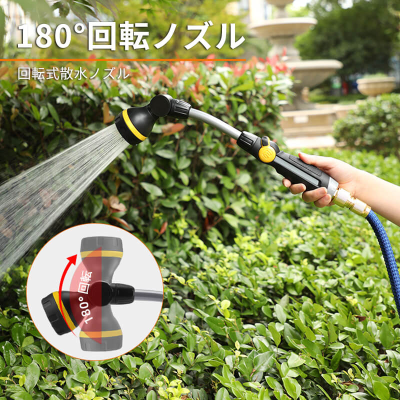お買い物マラソン【P5倍】散水ノズル 便利な操作 ホース 庭 植物 植木 ベランダ ガーデニング 10m 水やり 家庭菜園 庭 ハンディ 回転式散水ノズル 8種類の噴出パターン