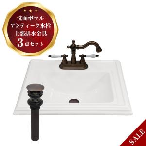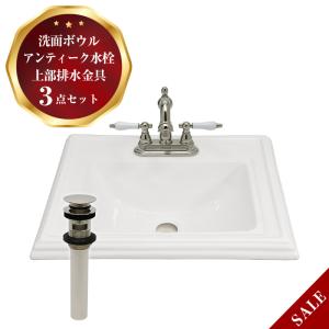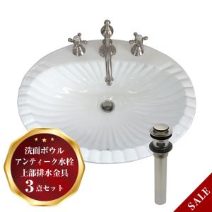 洗面用 3点セット 蛇口 洗面ボウル 上部排水金具 ホワイティボウル1040 Matilda スパニッシュ・キャッスルCC ニッケル