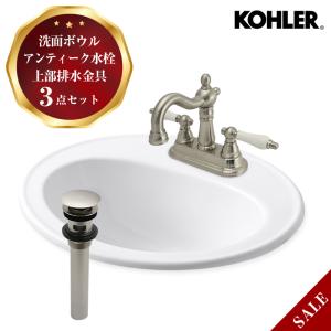洗面用 3点セット 蛇口 洗面ボウル 上部排水金具 KOHLER ペニントン Matilda ハーデン・ネオ (ブラッシュド・ニッケル) AHISET177-BN