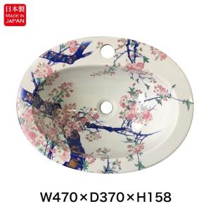 洗面ボウル おしゃれ 有田焼 染錦金彩桜絵 楕円 W470
