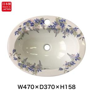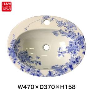 洗面ボウル おしゃれ 洗面台 洗面器 日本製 埋め込み 有田焼 染付大正ロマン 楕円 W470
