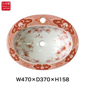 洗面ボウル おしゃれ 有田焼 錦鉄線花絵 楕円 W470