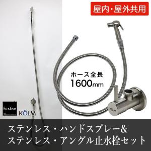蛇口 デザイン スタイリッシュ fusion KOLM ステンレス ハンドスプレー(屋内屋外兼用・ホース付)SSP500KM-1600 アングル止水栓 セット