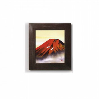 伊藤渓山 日本画額F6 (黒) 13296・赤富士【お寄せ品、返品キャンセル不可。欠品終売時連絡あり】