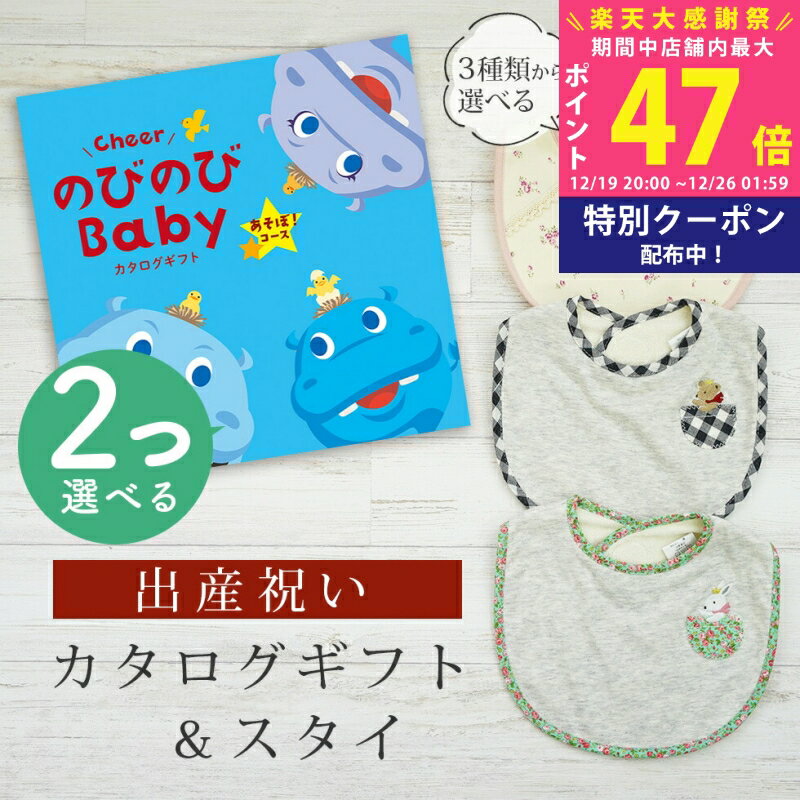 【大感謝祭特別クーポン配布中】出産祝い カタログギフト のびのび Baby 2つ選べる あそぼ!コース& スタイセット 1万円 2万円 【 ビブ 3