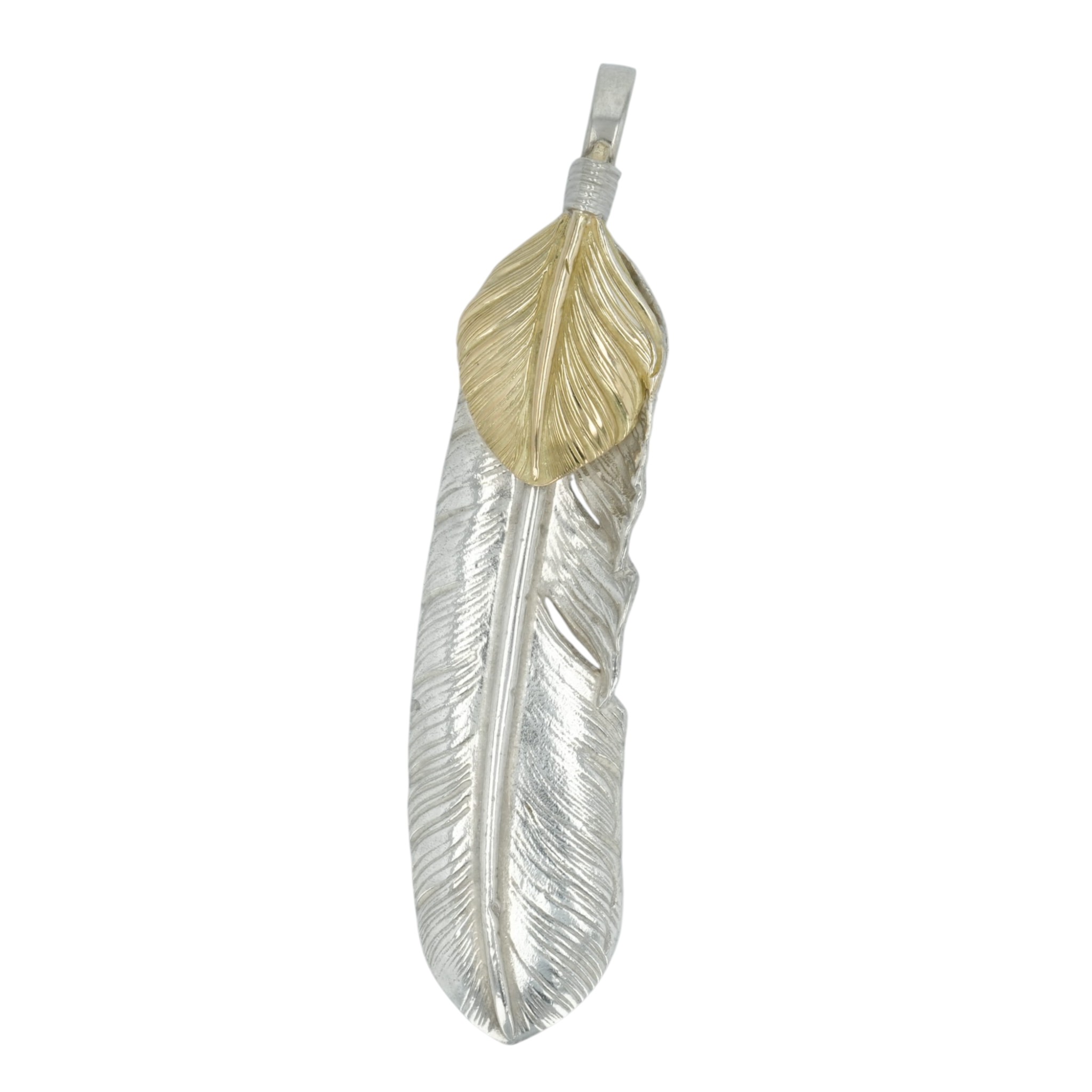 バディシルバーアクセサリー シルバー925 フェザーインディアンジュエリー 羽根 翼 Mサイズ ネックレスペンダントトップ ネイティブアメリカン プレゼント用巾着 袋セット ラッピング用ギフト 5-586