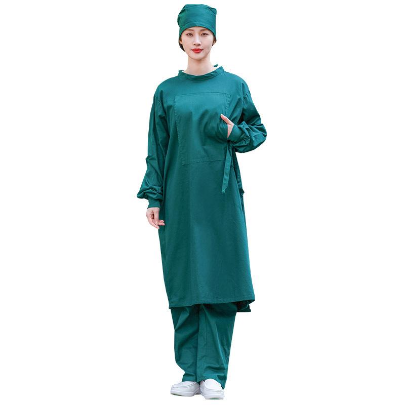 手術衣 男女兼用 長袖 綿 手術着 墨緑 浅青 医師 看護師 洗濯可能